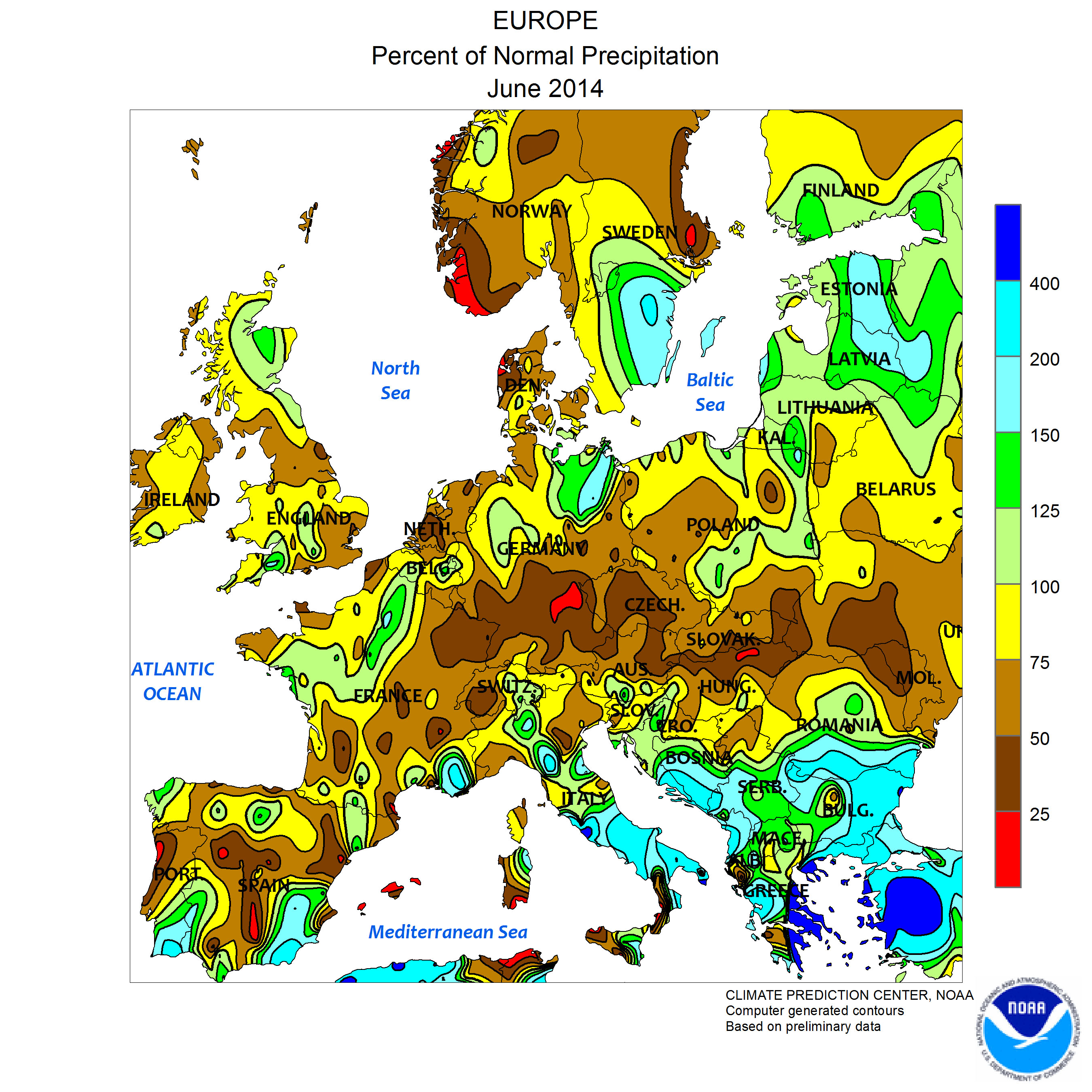 anomalie de température forte sur une Europe occidentale restée globalement sèche