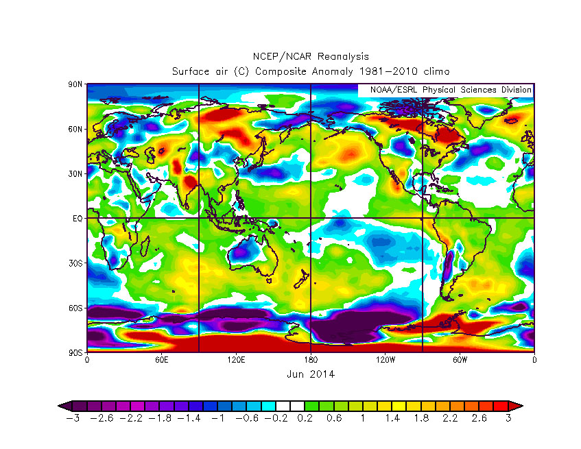 La moyenne depuis le début de l’année est la 4ème plus chaude (0.28°C), toujours selon NCEP, depuis 1948.