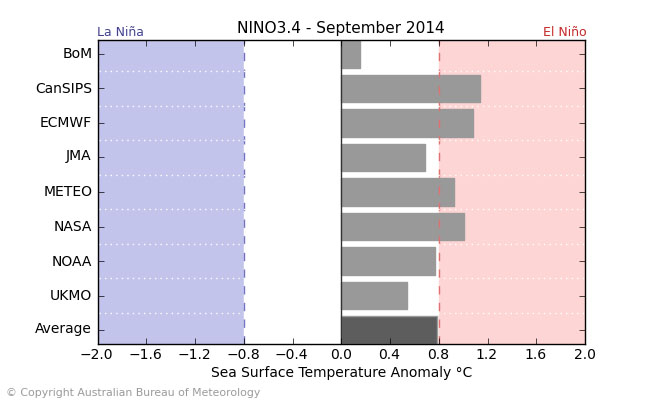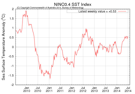 Selon le site australien de météorologie, si quelques indicateurs comme les eaux de sub-surface, qui ont refroidi, n’iraient pas dans le sens d’un futur El Niño,d’autres comme le SOI, qui a chuté, et les alizés, qui ont faibli, iraient plutôt dans ce sens.