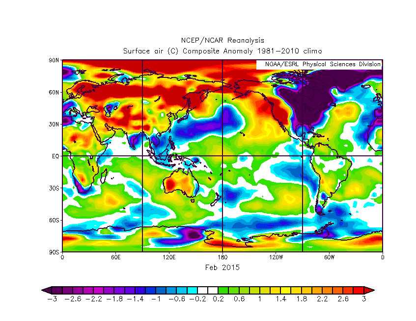 Mois encore très chaud selon NCEP, en 2ème place des févriers les plus chauds depuis 1948.