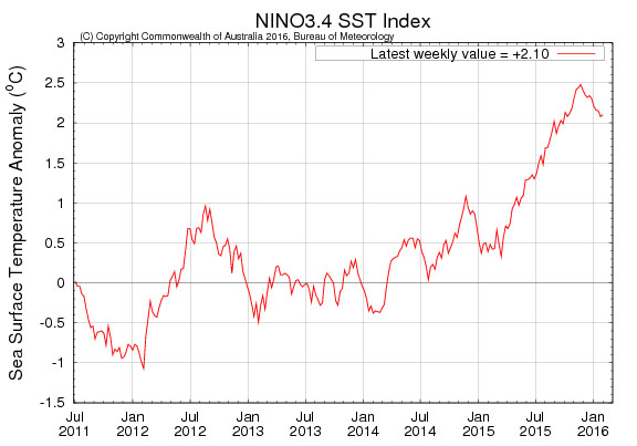 L’épisode El Niño reste très fort mais a désormais bien entamé son déclin.